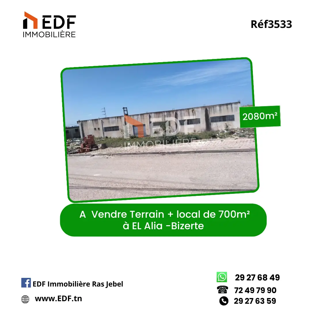 A Vendre Terrain+ local commercial à EL Alia Bizerte