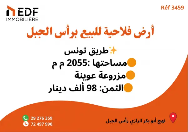 Réf 3459; Terrain agricole de 2055m² route Ras Jebel, Tunis